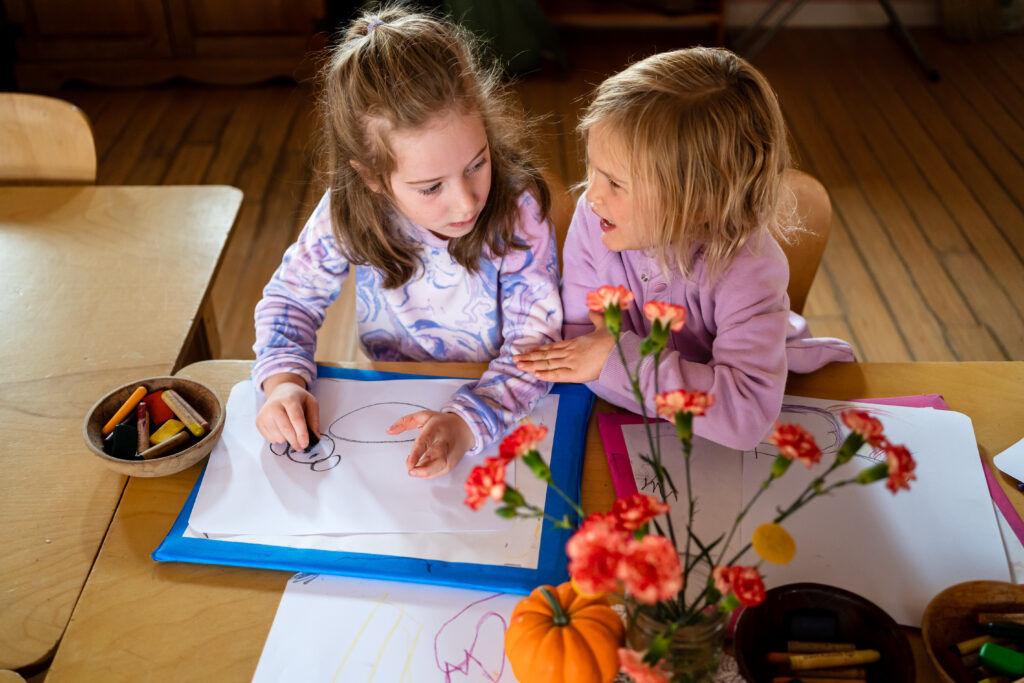 Regular rhythms – alternating vigorous activities with quieter ones – guide the structure of each day. The Early Childhood Education program week includes arts and crafts, puppetry, eurythmy, cooking, bread baking, singing games, healthy physical play, and learning social courtesies. With exquisite attention to language, the teacher tells fairy tales and stories over and over; children drink in the images and thereby strengthen an innate human capacity for forming inner pictures. This capacity, when properly nourished, becomes the basis for literacy and future critical thinking skills.