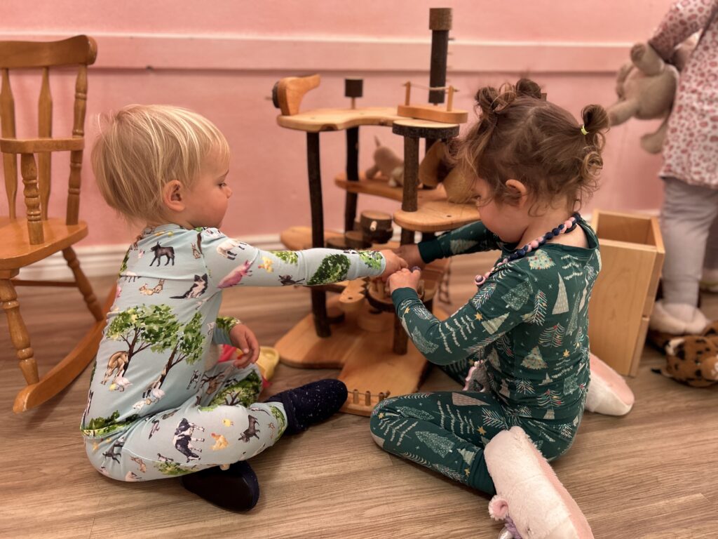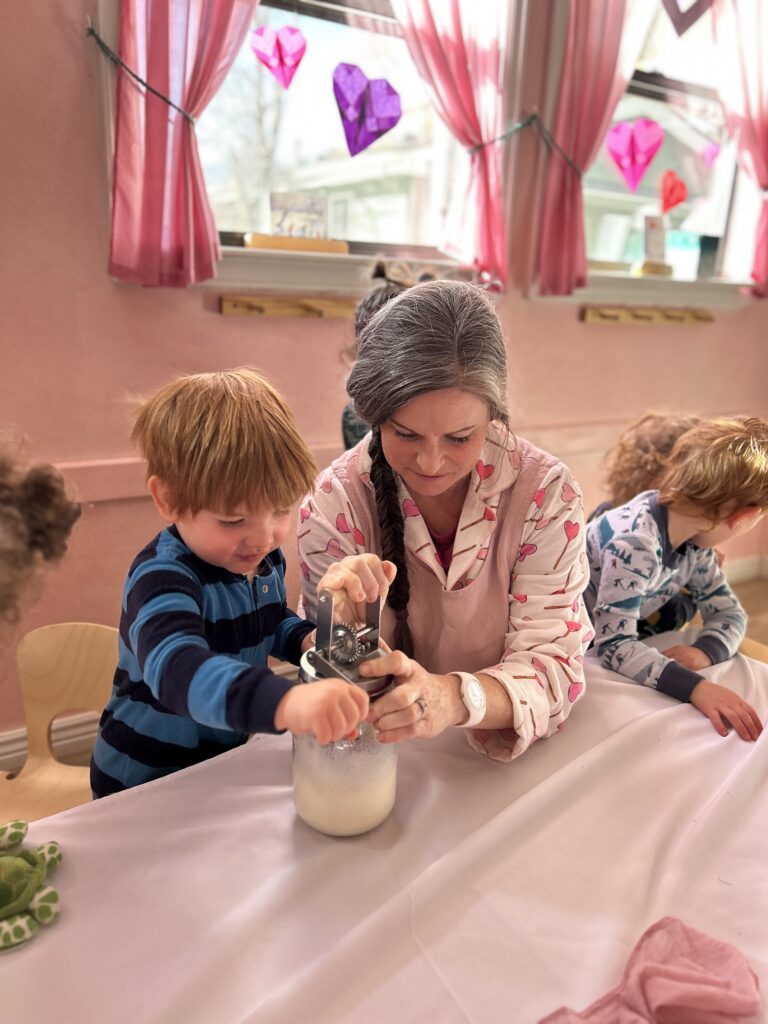 Shining Mountain offers full and partial-week options for children ages 2.5–4. Inside our home-like classrooms, your child explores a warm, soothing environment filled with natural materials and soft light. Here, creative play and imagination lead the way, guided by teachers who model purposeful, gentle action.